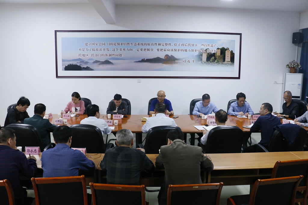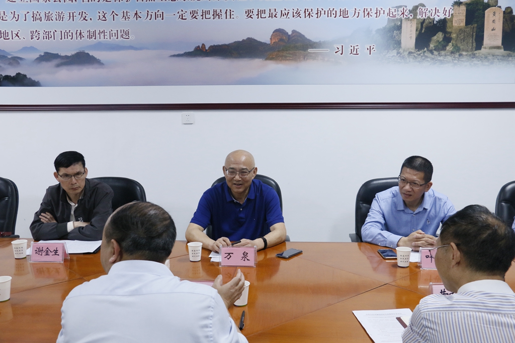 座谈会上,调研组一行认真听取了武夷山国家公园常务副局长林贵民介绍习近平总书记考察武夷山国家公园情况。武夷山国家公园副局长陈开团从“五个坚持、五个新”,即坚持优化整合,创建统一高效的行政管理新体制;坚持依法治园,健全规范完备的公园治理新体系;坚持生态优先,建立严格系统的生态管护新模式;坚持互促共赢,建立持续协调的绿色发展新机制;坚持全民参与,形成共建共享的生态文明新理念等五个方面详细介绍了武夷山国家公园体制试点工作经验做法,使调研组一行对公园体制试点建设有了更深入的了解。双方就林业职业教育发展、校企合作、松材线虫防治、碳排放、生态恢复评价、森林康养等方面进行深入座谈交流。