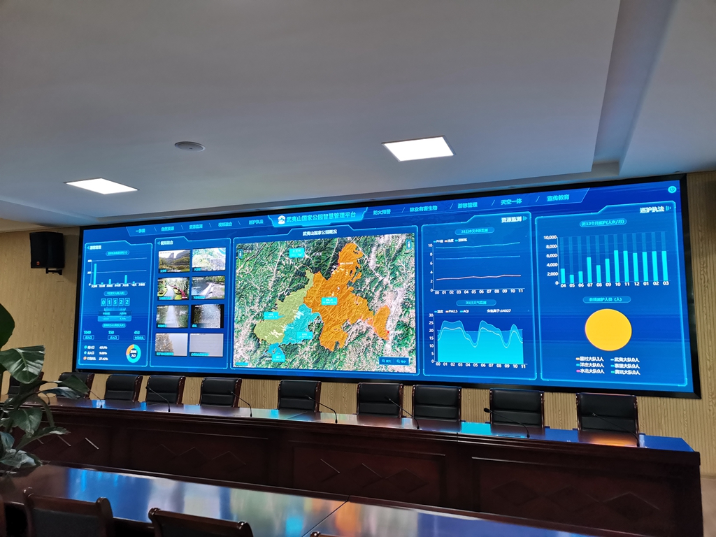 会后,调研组一行实地考察了武夷山国家公园智慧管理平台。据悉,武夷山国家公园智慧管理平台综合运用互联网、物联网、卫星遥感、无人机、GIS等信息技术手段,主要包含一张图、自然资源、资源监测、巡护执法、视频融合、防火预警、林业有害生物、游憩管理、“天空”一体及科普宣传等10个子系统,实现了对武夷山国家公园“天空地”一体化监测。