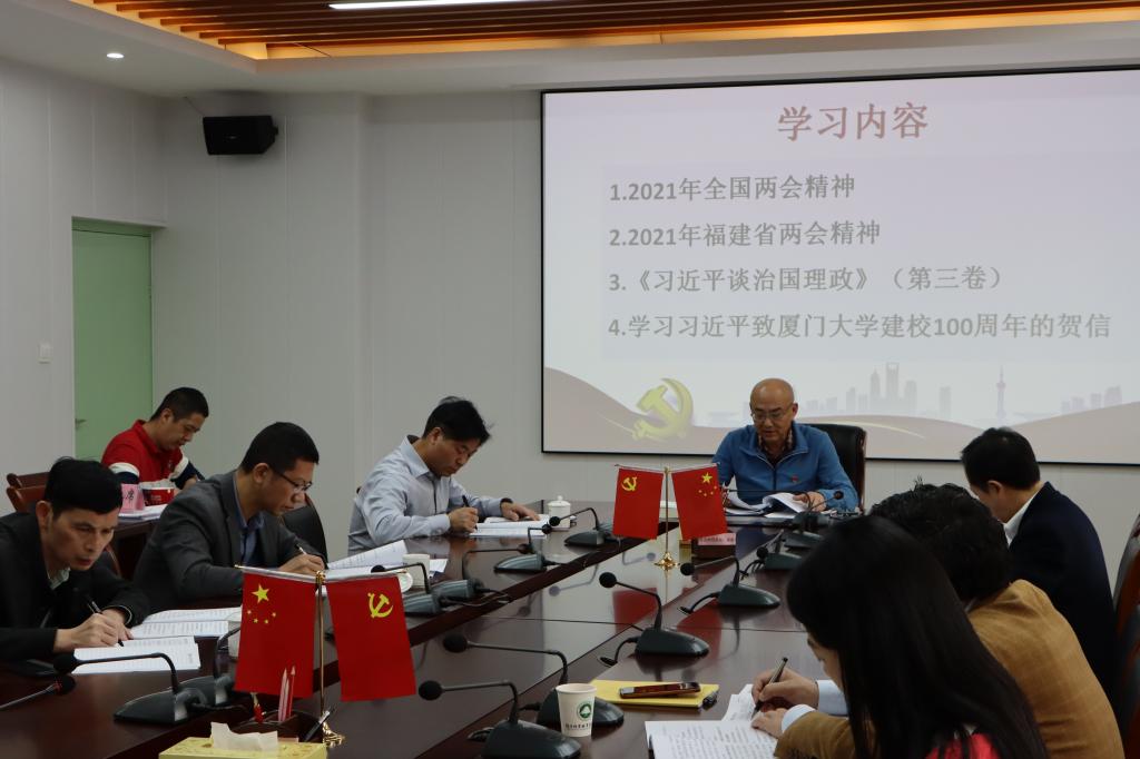 与会同志集体学习了2021年全国两会精神、2021年福建省两会精神、《习近平谈治国理政》第三卷(《把乡村振兴战略作为新时代“三农”工作总抓手》)、习近平致厦门大学建校100周年贺信精神。