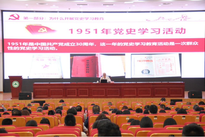 4月13日下午,院党委书记万泉在江南校区图书馆报告厅作《从百年党史中汲取前行的力量》专题党课,揭开了“党课开讲啦”活动的序幕。在家院领导出席报告会。学院全体教工党员、江南校区习近平新时代中国特色社会主义思想读书社成员和林业技术2002班全体同学共300余人到场聆听报告会。报告会由院党委副书记严绍裕主持。