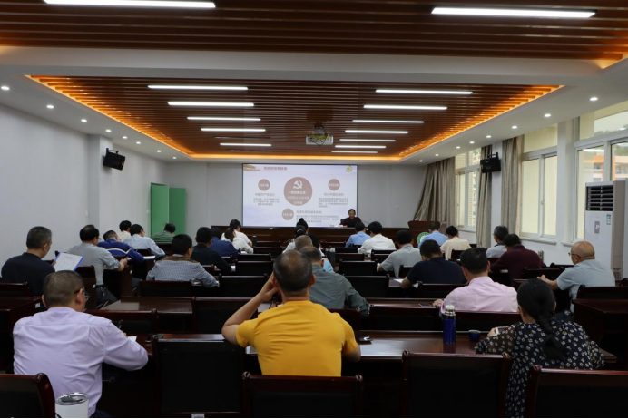 本网讯 “一部百年党史给我们的最主要启示就是:‘不忘初心、牢记使命’。”为深入开展党史学习教育,丰富党史学习教育形式,营造浓厚的学习氛围,动员全院广大师生党员 “学党史、悟思想、办实事、开新局”,根据党史学习教育专题读书班安排部署,5月7日下午,院党委副书记、院长刘文开在江南校区办公楼六楼会议室作《党的百年奋斗历程——学习<中国共产党简史>》党史学习教育专题党课。全院副处级以上干部到场聆听党课。党课由院党委副书记严绍裕主持。