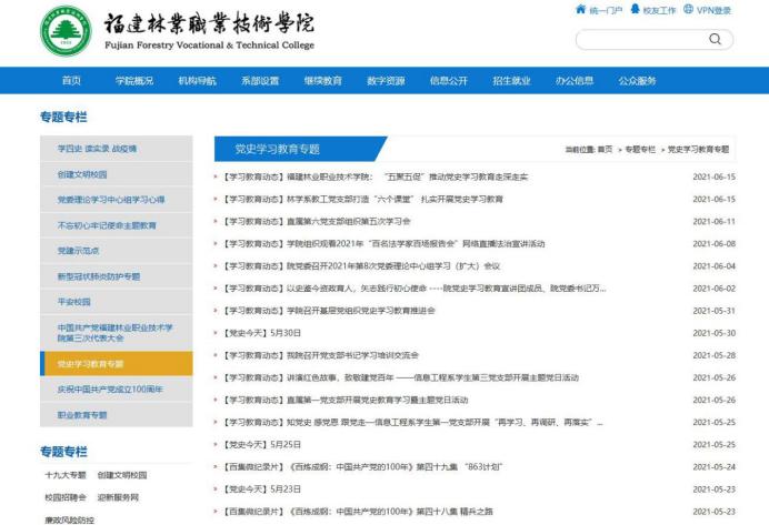 本网讯 开展党史学习教育以来,福建林业职业技术学院党委紧扣目标任务,突出“五聚五促”,着力在压实主体责任、提升学习质量、我为师生办实事、彰显优势特色、用好宣传阵地上下功夫,以务实高效的举措,推动党史学习教育走深走实。