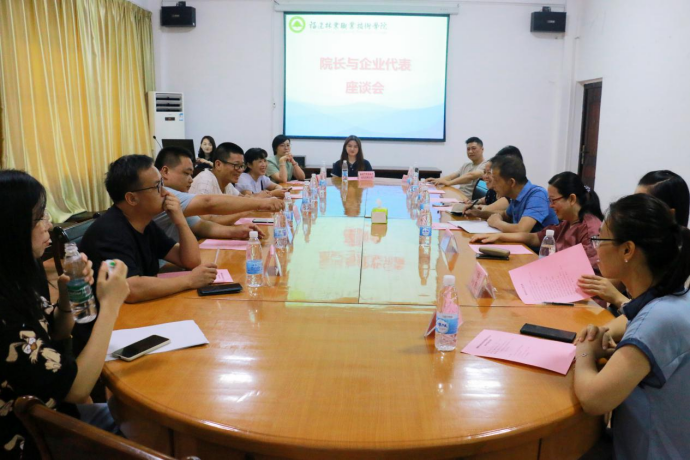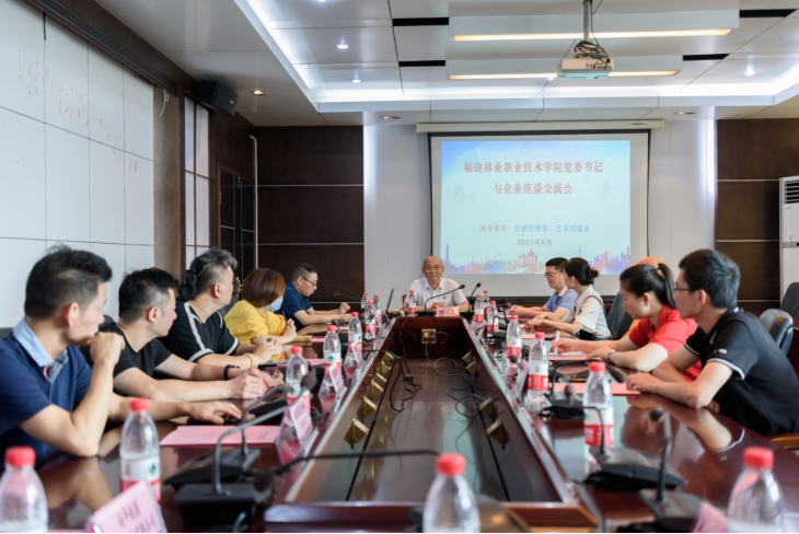 本网讯 为了解企业对高素质技术技能人才的需求,助推校企深度合作,积极响应教育部关于“鼓励职业院校的书记、校长带头联系100家以上的企业(含企业到校走访)”号召,2021年6月26日,福建林业职业技术学院党委书记万泉、院长刘文开分别与来校参加校园招聘会的福建麦田房产经纪有限公司、福建瑞禾人力资源服务有限公司等企业代表进行了座谈交流。座谈会分别由艺术传媒系党总支书记陈政及经济管理系副主任(主持工作)林文胜主持。