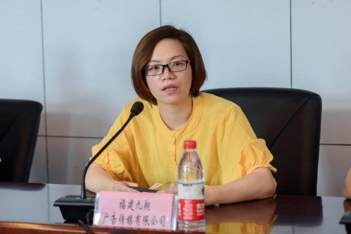 艺术传媒系党总支书记陈政主持座谈会并向企业代表介绍学院概况
