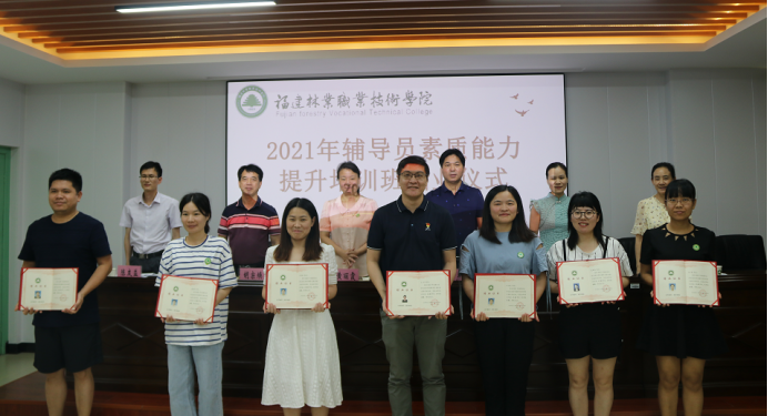 本网讯 为进一步强化我院辅导员队伍建设,全面提升辅导员的思想水平、政治觉悟、道德品质、文化素养、科研能力和育人效果,2021年4月至6月,学生工作部组织开展了2021年辅导员素质能力提升培训班。经过近三个月的理论知识讲授和校内外实践培训,本期培训班圆满完成了规定的培训课程。2021年6月25日,我院在江南校区办公楼六楼会议室举办了2021年辅导员素质能力提升培训班结业仪式。院党委副书记严绍裕、宣传部部长邹小燕、人事教育处处长黄丽霞、学生工作部部长蔡敏、安全保卫处处长胡宗焕、团委副书记(主持工作)陈友益,林学系党总支书记徐洪、建筑工程系党总支书记王云彪、艺术传媒系党总支书记陈政、经济管理系党总支书记谢福荣、园林系党总支书记陈剑勇、信息工程系党总支副书记(主持工作)罗志斌、各系学生科长和全体专兼职辅导员参加了结业仪式。结业仪式由蔡敏部长主持。