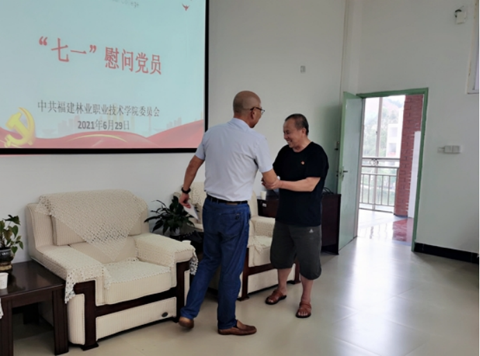 本网讯 2021年6月29日,学院党委书记万泉代表院党委慰问了我院获得党内功勋荣誉表彰的党员、生活困难党员和退休老党员,为他们送去节日的祝福和亲切的问候。