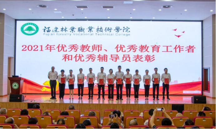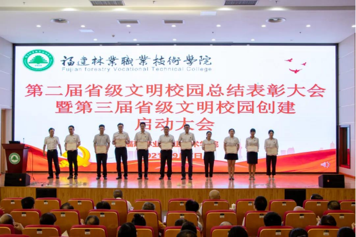 在第二届省级文明校园总结表彰大会暨第三届省级文明校园创建启动大会上,严绍裕副书记宣读《中共福建林业职业技术学院委员会关于表彰2018-2020年创建省级文明校园先进集体、先进个人的决定》;纪委书记林建斌为获得“2018-2020年创建省级文明校园先进个人”称号的10位老师颁奖;副院长谢金生为获得“2018-2020年创建省级文明校园先进集体”称号的5个部门授牌。