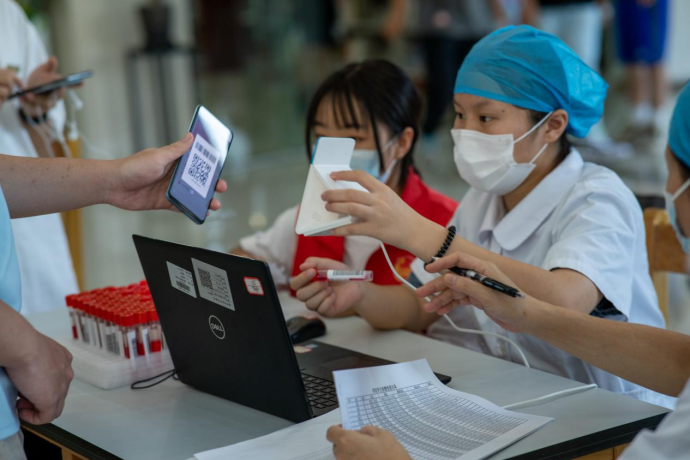 此次核酸检测人数多、时间紧、任务重,但整个采集检测流程科学规范、井然有序。咽拭子采集工作由延平区疫情防控指挥部承担,引导、核验、登记、采样打包、秩序维护等工作则由我院工作人员负责。检测核酸的学生在预约核酸登记处登记检测,然后在采样点由经过专业培训的医护人员严格按照要求规范采样,学生完成咽拭子采集后,迅速离场。