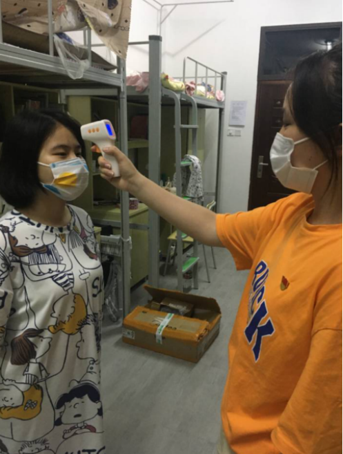 学生党员进宿舍测量体温