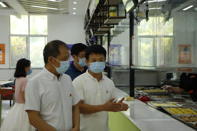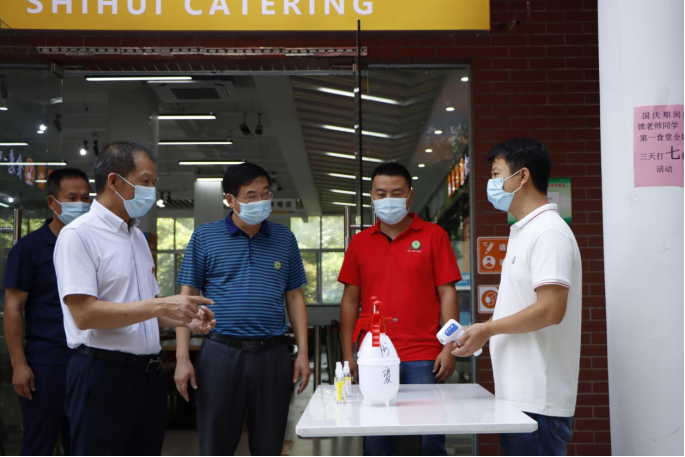 学院本着优质服务、方便师生的原则,国庆期间切实保障好师生员工在校内饮食、住宿、快递、用水、用电、用网等实际生活需求。“目前,学院江南校区有六个食堂,天麟校区有两个食堂,经过全面改造升级,食堂环境优美、菜品种类多,供应充足,同时在国庆期间,所有食堂1日-3日打七折,1日-7日超市26种常用商品打八折,开放图书馆,丰富学生生活。”学院院长刘文开高度重视假期学生在校期间的学习和生活保障,在国庆假期前就带领副院长谢金生、后勤处处长雷泽兴等深入学院食堂、超市,要求学院食堂保证所提供的菜品种类多、分量足、不涨价并保证供餐时间,校内超市做到保质稳价。测体温、酒精消毒杀菌……刘院长体验了食堂疫情防控措施后,仔细检查了食堂、超市防疫和消防安全,切实保障假期全体师生的食品安全和生活学习安全。