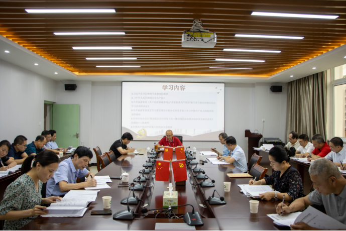 本网讯 2021年10月7日下午,按照院党委安排部署,院党委书记万泉在江南校区办公楼第一会议室主持召开2021年党委理论学习中心组第13次会议,开展意识形态工作专题学习。院党委委员、党政领导班子成员、党政办公室主任、纪委办公室主任、学生工作部部长、人事教育处处长、安全保卫处处长、马克思主义学院院长、党总支书记、直属党支部书记参加学习。