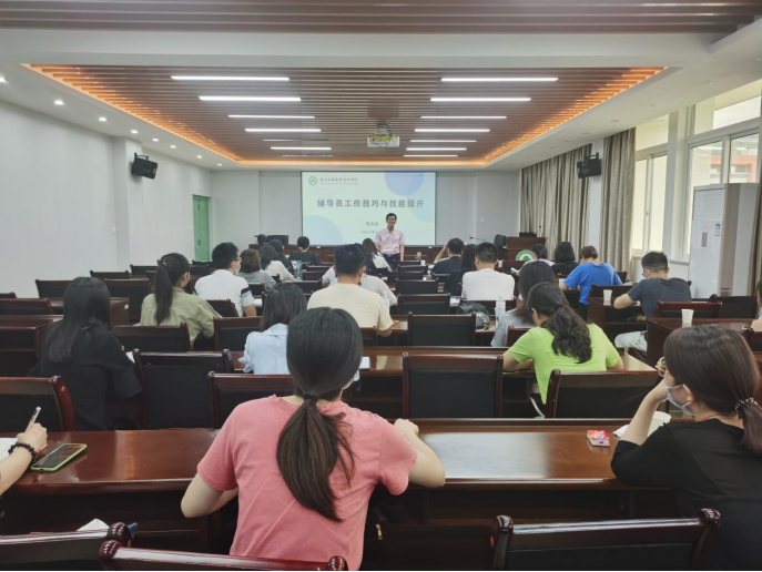 二、院团委副书记(主持工作)、学生处副处长陈友益副教授为新教师作“辅导员工作技巧与技能提升”专题培训