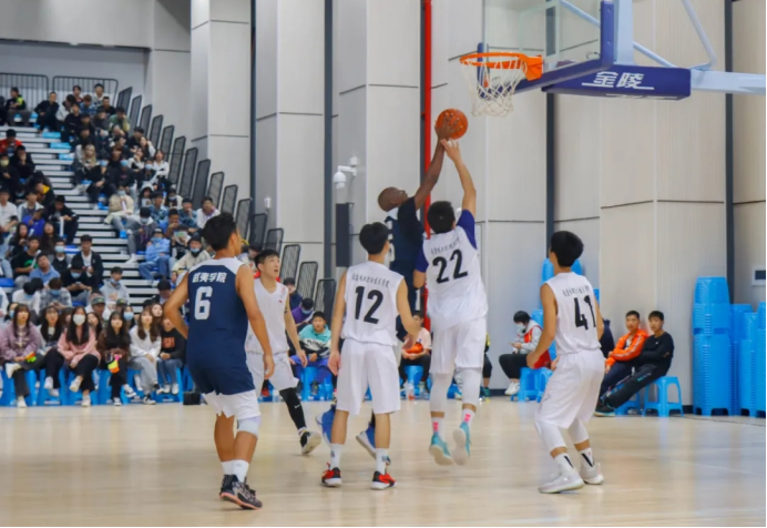 随着裁判一声哨响,比赛的战鼓敲响,篮球被高高抛起,场上球员看准时机、奋力一跃,展开了激烈的角逐,场下观战师生的喝彩声不绝于耳。场上球员时进时退、时缓时急,不时上演精彩的配合;一次次精准的远投,每个精彩的带球过人、传球、防守、进球,更是引来场外观众掌声阵阵、喝彩连连,整个赛场因竞技场上的角逐而沸腾,体现了新时代青年学生奋发向上的精神状态。