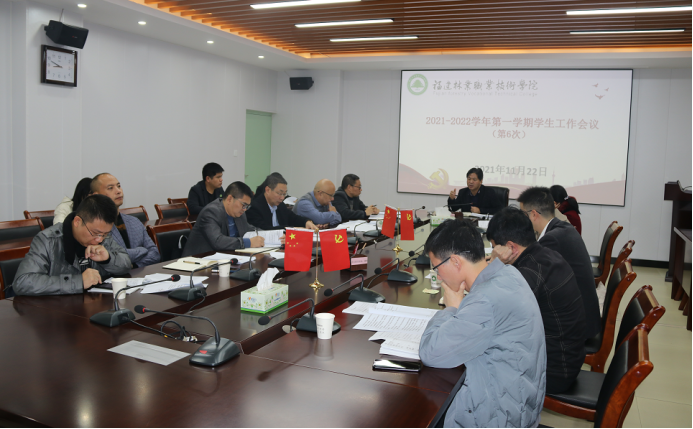 本网讯 11月22日,我院2021-2022学年第一学期第六次学生工作会议在江南校区办公楼五层会议室召开。院党委副书记严绍裕出席会议。学生工作部、安全保卫处、院团委负责人,各系党总支书记参加会议。会议由学生工作部部长蔡敏主持。