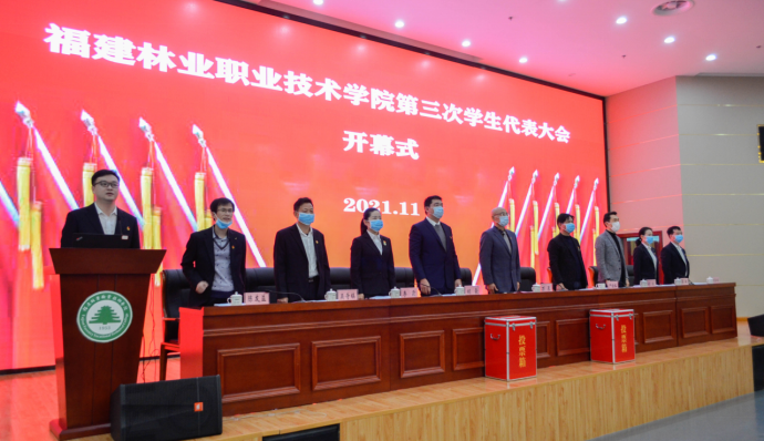 在庄严的国歌声中,福建林业职业技术学院第三次学生代表大会开幕了。