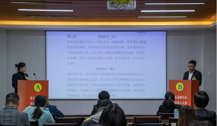 据悉,本次辅导员素质能力大赛共分为基础知识测试和案例研讨比赛两个环节。基础知识测试的内容涵盖党的创新理论、路线方针政策、习近平新时代中国特色社会主义思想。案例研讨环节主要考察辅导员对相关理论政策、学生特征、学生成长成才规律的了解把握,及对问题的解决能力和对学生的教育引导能力。比赛旨在提高我院辅导员的理论水平与专业素养,提升辅导员队伍核心素质能力,使全院辅导员进一步明确岗位职责要求,提升工作能力,坚定职业理想,促进辅导员队伍职业化、专业化发展。