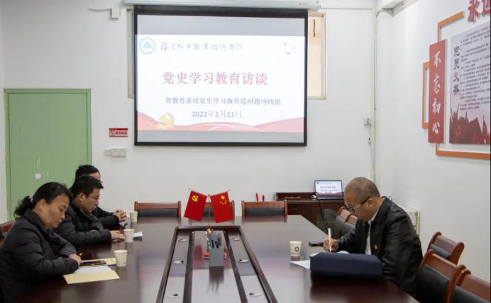 宣讲会后,福建省教育系统党史学习教育巡回指导四组召开党史学习教育工作座谈会,与我院党员干部、普通党员和群众代表展开座谈、访谈。参会代表结合自身岗位工作,就学院党史学习教育开展情况、个人学习体会及下阶段的工作思路等展开交流。他们畅谈对学院开展的“我为师生办实事”实践活动的感受,认为学院将党史学习教育与中心工作相结合,与立德树人根本任务相结合,为师生办实事、解难题,师生获得感幸福感提升,谋新篇开新局取得实效。