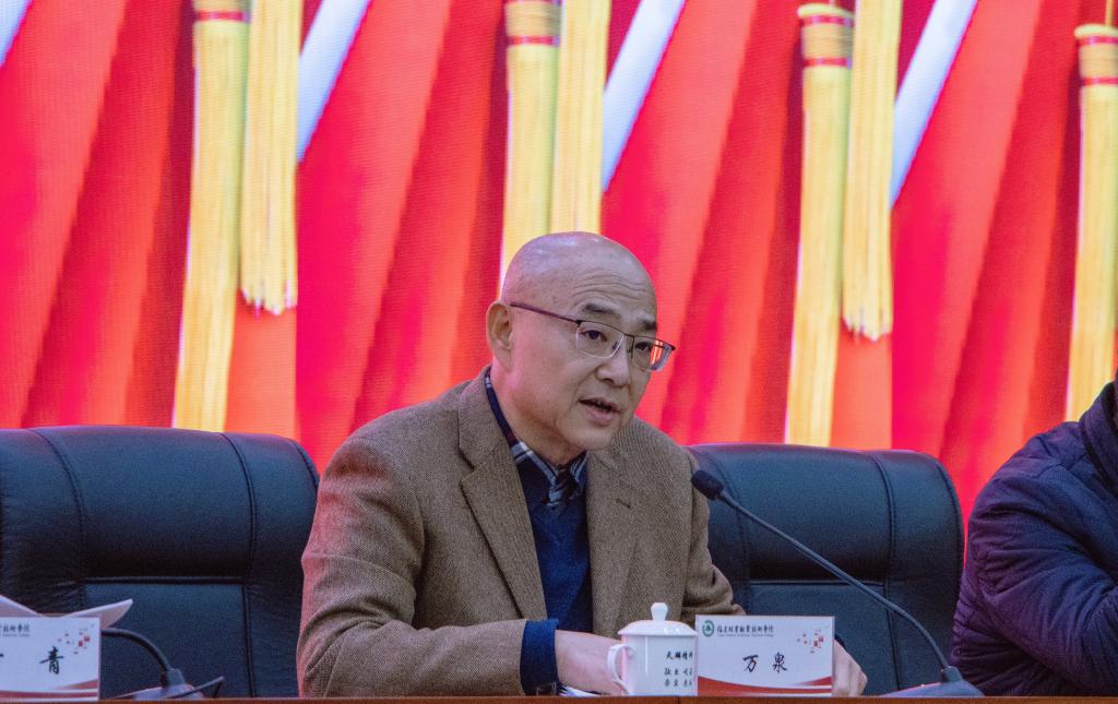万泉全面总结学院党史学习教育开展情况。他指出,开展党史学习教育以来,学院党委紧盯学史明理、学史增信、学史崇德、学史力行总要求,聚焦“严”字精准发力,促进主体责任链条压紧压实;聚焦“深”字狠下工夫,促进学习教育质量持续提升;聚焦“实”字真抓实干,促进“我为师生办实事”见实效;聚焦“亮”字开拓创新,促进各类优势特色充分彰显;聚焦“红”字营造氛围,促进宣传阵地线上线下齐发力,以务实高效的举措,扎实推动学习教育走深走实。