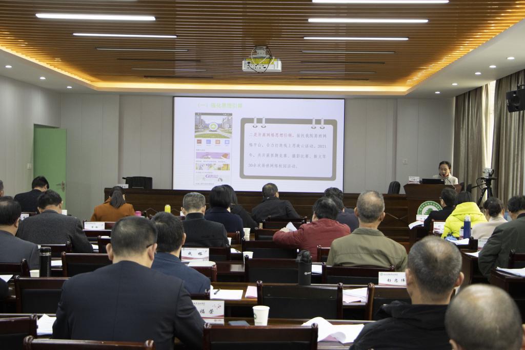 本网讯 根据学院2021年度考核测评安排,1月10日,学院在江南校区第四会议室召开2021年院系部门负责人述职评议考核大会。院领导万泉、刘文开、严绍裕、林建斌、罗立仪、谢金生出席会议。全体中层干部、民主党派及无党派人士代表、工会代表参加会议。述职测评大会由党委副书记严绍裕主持。