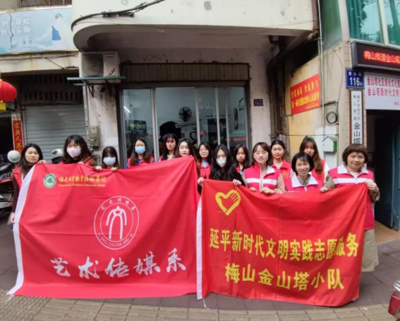 艺术传媒系志愿者服务队与延平新时代文明实践志愿服务梅山金山塔小队联合开展志愿服务活动。活动包括宣传雷锋精神、美化社区环境等,让雷锋精神成为主旋律,树立良好的社会风气,同时,营造“干净、卫生、文明、和谐”的社区环境,为社区的建设贡献一份力量。
