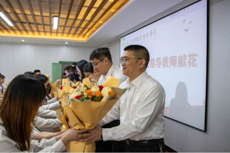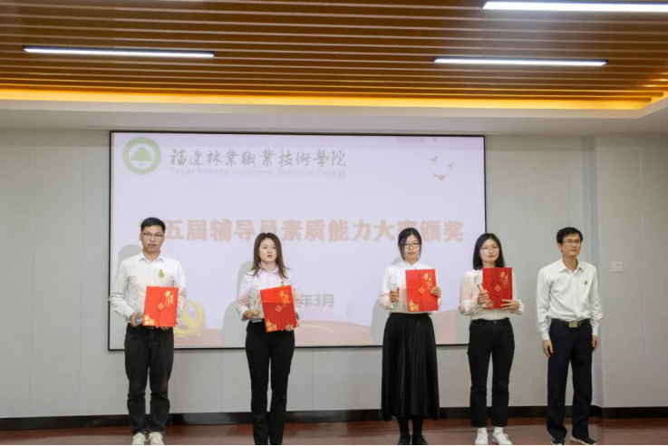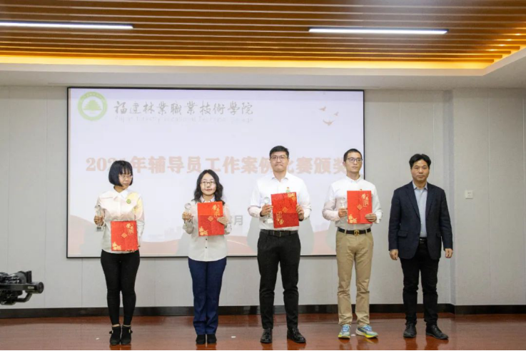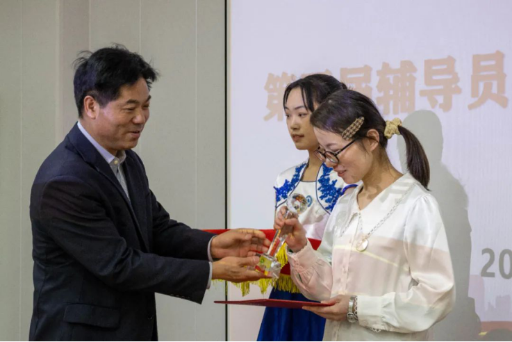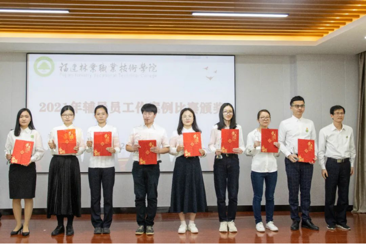 仪式上,党委副书记严绍裕宣读了第五届辅导员素质能力大赛和2021年辅导员工作案例比赛的表彰文件。党委书记万泉、党委副书记严绍裕和团委书记陈友益为获奖辅导员颁奖。