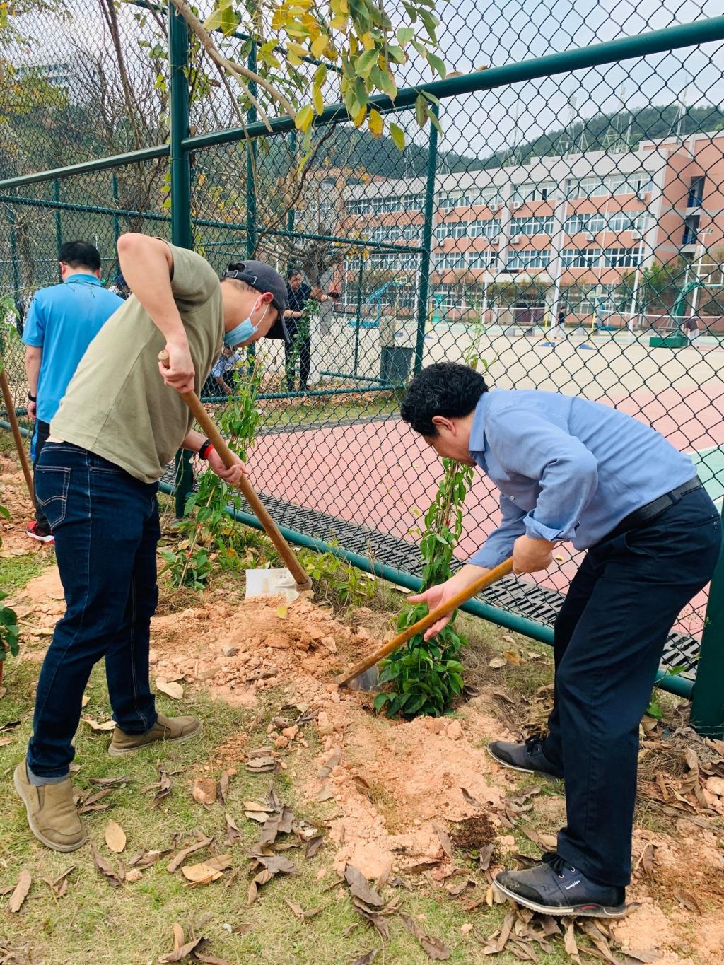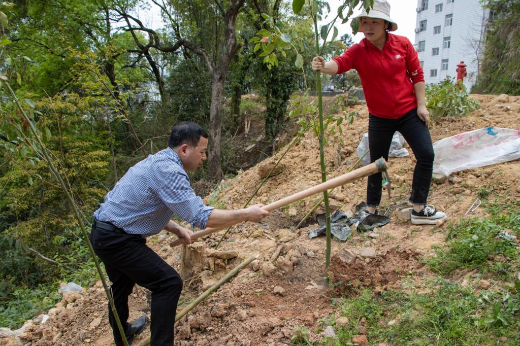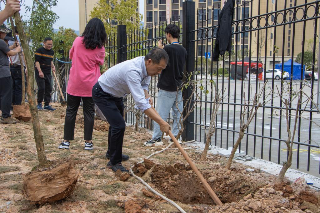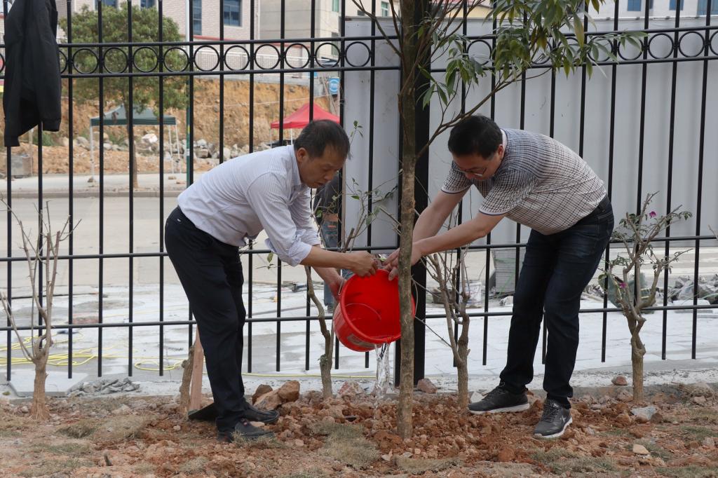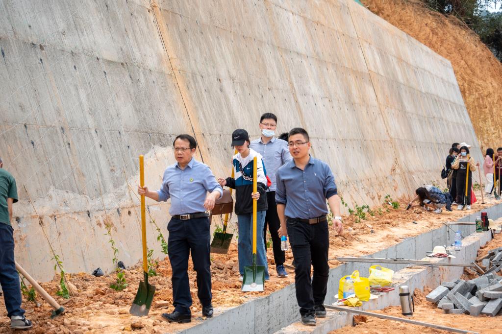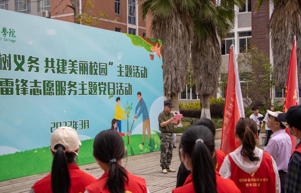 本网讯 春风吐绿、草木初萌。在全国第44个植树节与学雷锋月交汇之际,为进一步倡导人人爱绿植绿护绿的文明风尚,弘扬雷锋“奉献、友爱、互助、进步”的志愿精神,3月14日下午,院党政领导同全体师生党员齐聚校园,共同开展“履行植树义务 共建美丽校园”主题活动暨学雷锋志愿服务主题党日活动。