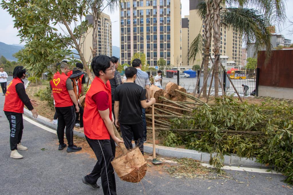 启动仪式后,各系、各部门分别到学院两个校区的植树点进行植树。植树现场一派热火朝天,师生们干劲十足,配合默契,在专业教师的指导和学生志愿者的帮助下分工协作,扛苗散苗,挥楸铲土,扶苗踏实,到处都是忙碌的身影。大家不顾鞋裤上的泥土,一起挥锄扬锹,把一棵棵树苗稳稳地栽好,用自己的行动和汗水充分展现了林职院师生的良好风貌与责任担当。
