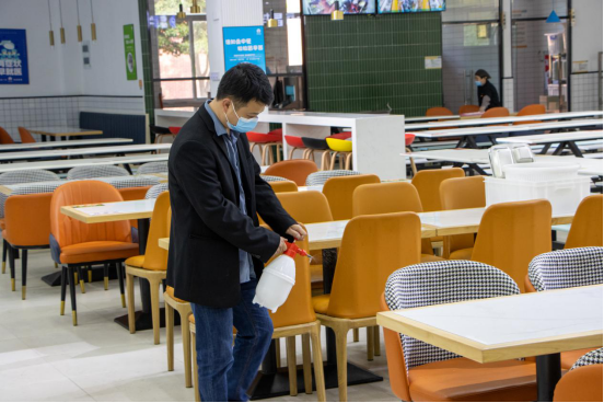 把好防护关。不漏死角,不留隐患,教室、食堂、电梯……校园里的各个角落定期全面消杀,以彻底阻断病毒传播途径。教室、食堂、超市等公共区域严格落实测温验码、通风消杀、戴口罩等防疫措施,切实筑牢校园防控疫情的防线。