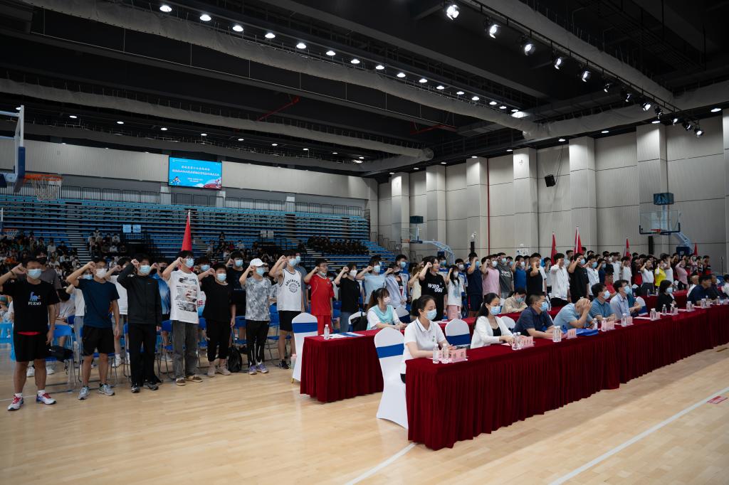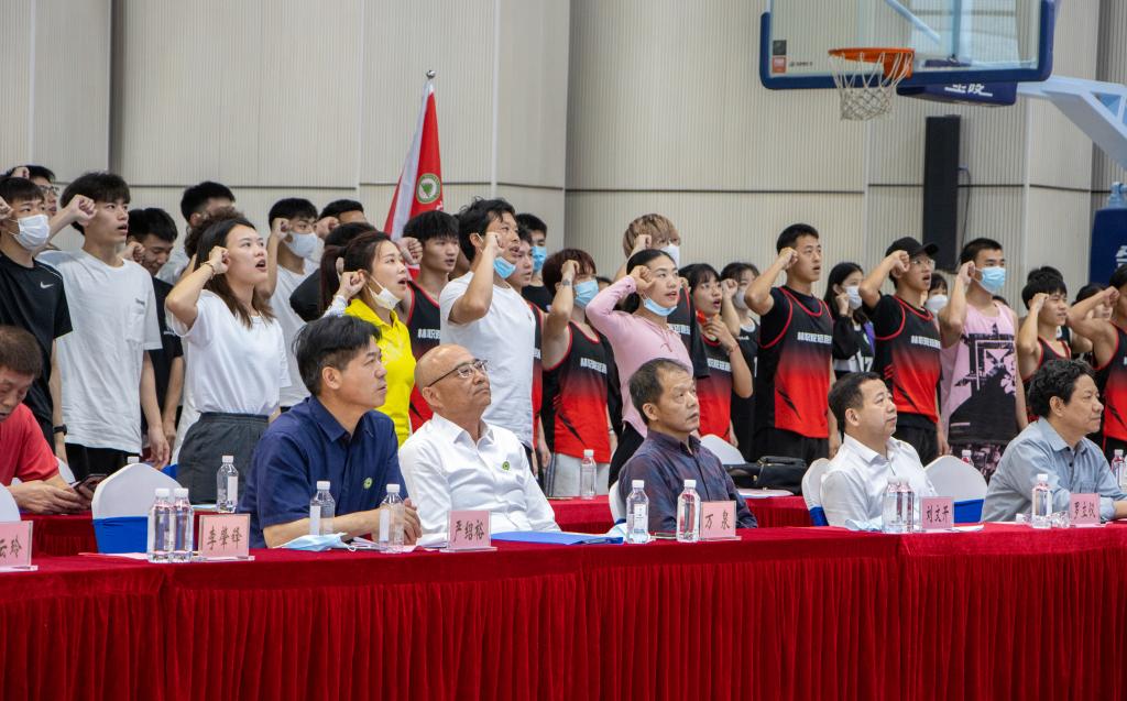 在学院体育教研室主任、体育代表团秘书长徐豪老师带领下,代表团教练员、运动员集体宣誓!