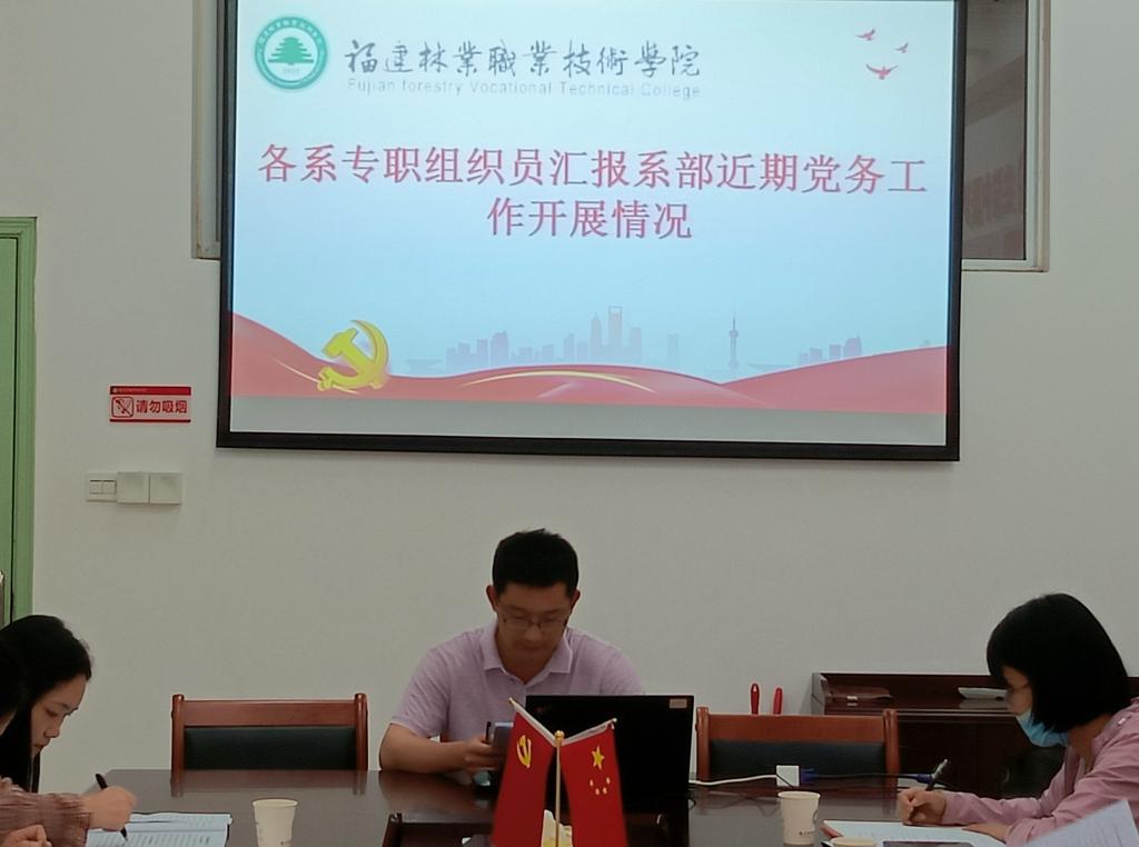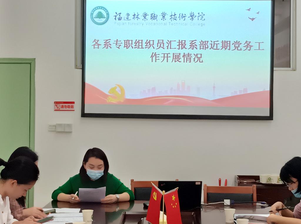 各系专职组织员就近期系部党务工作、省级党建工作样板支部验收筹备,以及院级党建示范创建和质量创优工作等方面做了工作汇报。