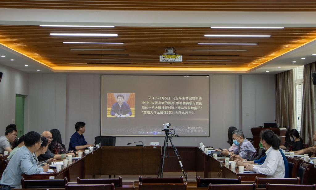 万泉书记主持了意识形态专题学习,通过领学《中国共产党宣传工作简史》,观看《历史虚无主义与苏联解体——对苏联亡党亡国三十年的思考》专题片,深入学习贯彻习近平总书记关于宣传思想工作的重要思想,深刻认识意识形态风险挑战。万泉书记强调,各党组织、各部门要把《中国共产党宣传工作简史》作为推进党史学习教育常态化的重要内容,纳入各党总支理论学习中心组学习和党支部“三会一课”计划,纳入贯彻落实意识形态工作责任制的工作部署,不断增强广大党员干部对党的宣传工作极端重要性的认识,加强意识形态阵地管理,筑牢意识形态安全防线,做好新时代宣传工作,唱响主旋律,传播正能量,营造积极奋进的氛围,以昂扬奋斗姿态和一流工作业绩迎接党的二十大胜利召开。