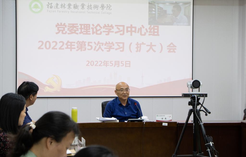 本网讯 2022年5月5日下午,院党委书记万泉主持召开2022年第5次党委理论学习中心组学习(扩大)会议。院党委委员、各系党总支负责人、机关处室党支部书记、各部门负责人参加了学习会。