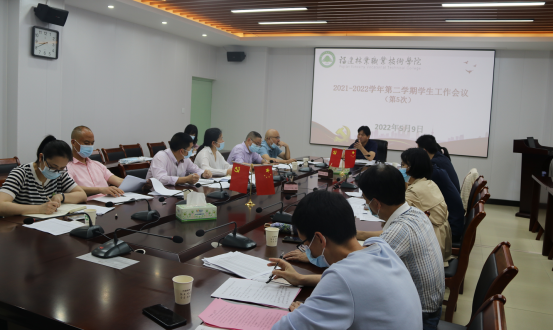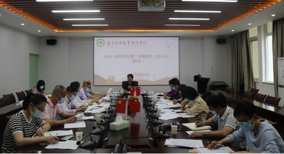 本网讯 5月9日上午,学院在江南校区行政楼五楼会议室召开2021-2022学年第二学期第5次学生工作例会。院党委副书记严绍裕出席会议。学生工作部、安全保卫处、团委负责人,各系党总支书记参加了会议。会议由严绍裕副书记主持。