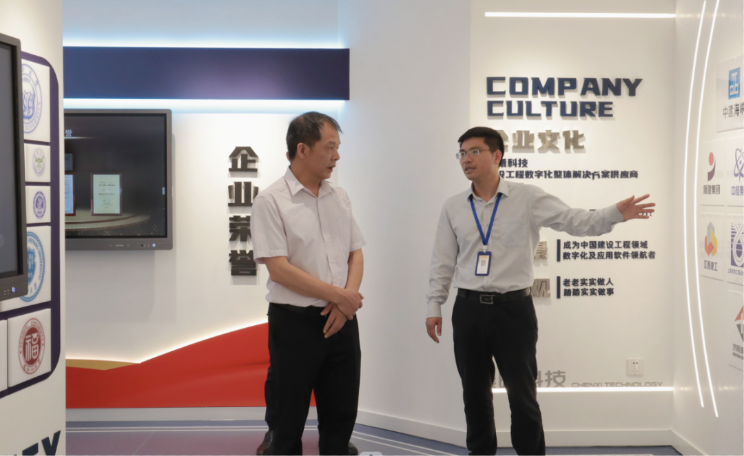 晨曦科技董事、常务副总裁、党群工作负责人陈文灵陪同参观了晨曦科技数字党建学堂、党群多功能厅、党建文化墙、企业展厅,详细介绍企业的发展历程、产品架构、企业文化、未来发展战略等方面的内容,着重分享了晨曦科技在数字工程教育方面的工作模式与取得的成效。