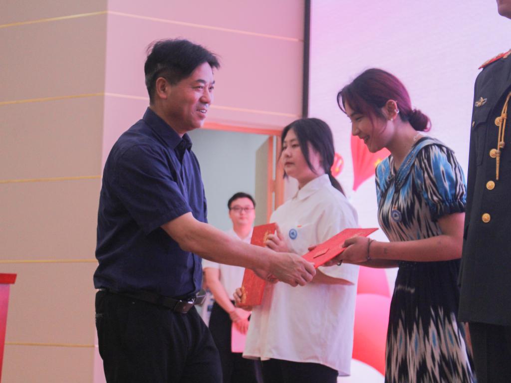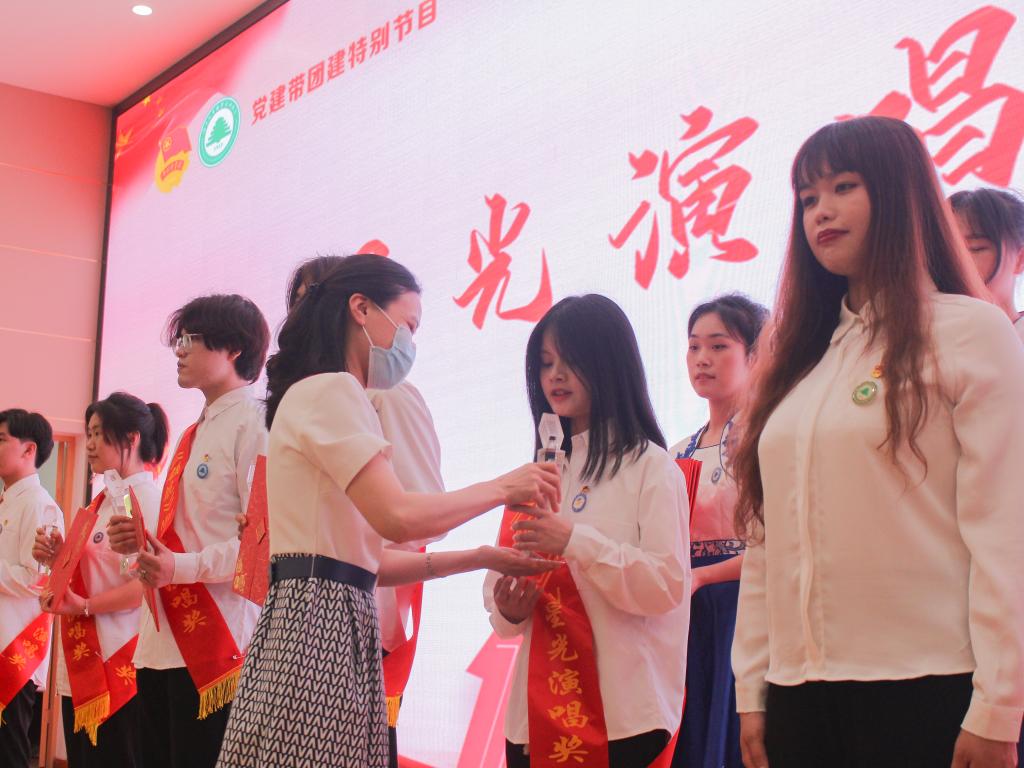 △院团委书记陈友益为艺术团优秀队伍颁奖