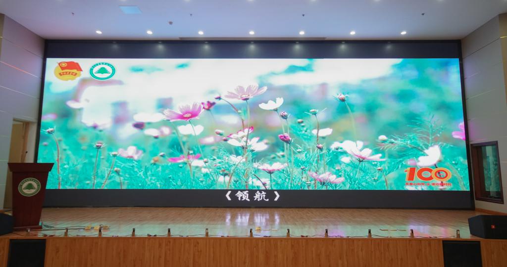 与会领导手掌触屏倒计时启动首映式,师生共同观看《领航》正片。激昂的旋律、振奋人心的歌词、波澜壮阔的画面。党团同心,铸就新辉煌。