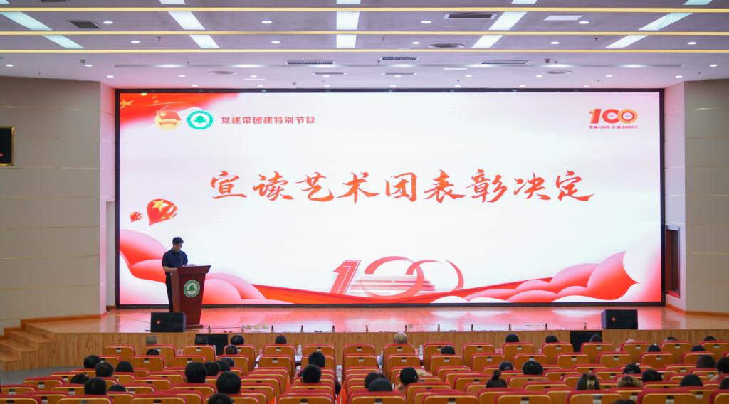 院党委副书记严绍裕宣读天麟艺术团表彰决定。本次共表彰16位“天麟艺术团优秀队员”、11位“天麟艺术团优秀干部”、6支“天麟艺术团优秀队伍”、8位“天麟艺术团优秀指导老师”。