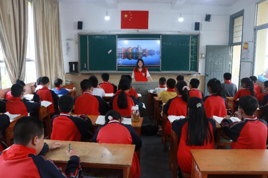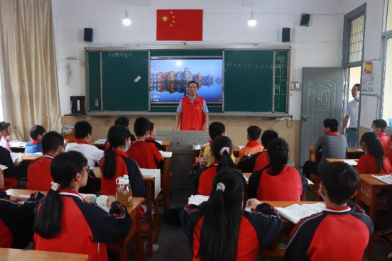 马克思主义学院教师李建文、学生支部书记林燕琼分别到教室里与小学生们亲切互动,向同学们讲授小侦察员张嘎、小卫生员孙大兴、抗日小英雄海娃等故事,并向同学们提问有关中华传统文化问题,对答对问题的同学发放学习用品进行鼓励。期间两位老师鼓励同学们要好好学习,天天向上,成为对社会有用的人。