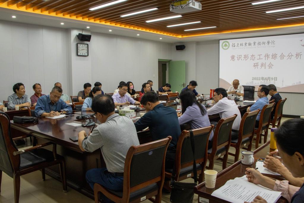 本网讯 2022年6月9日,院党委书记万泉主持召开意识形态工作综合分析研判会,分析研判意识形态领域情况。院党政领导班子成员、各部门负责人及各系党总支书记参加会议。