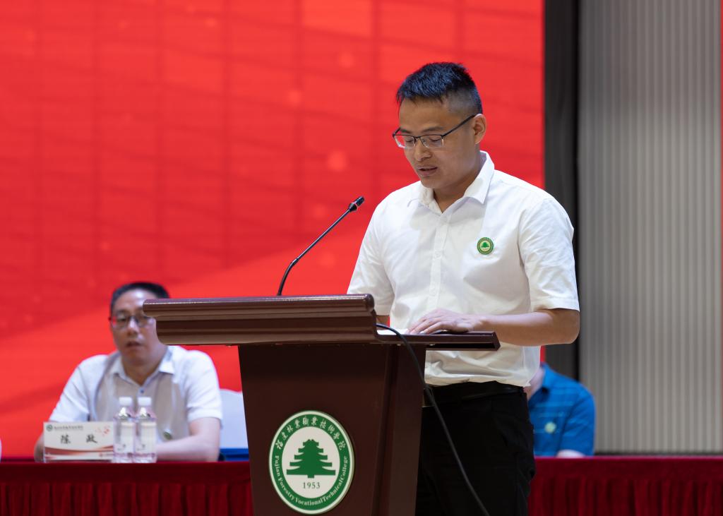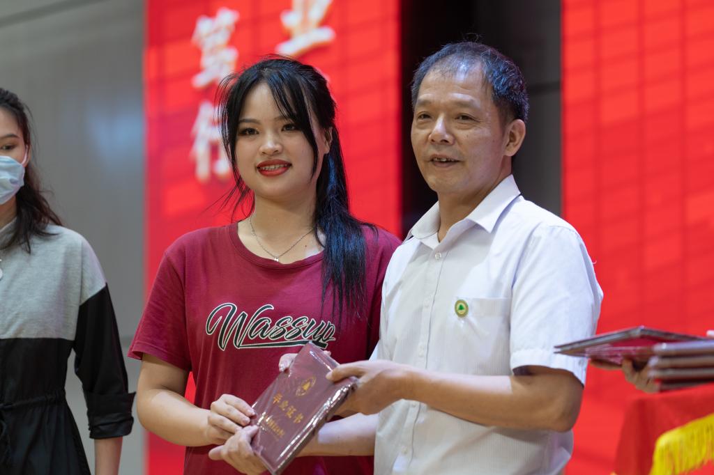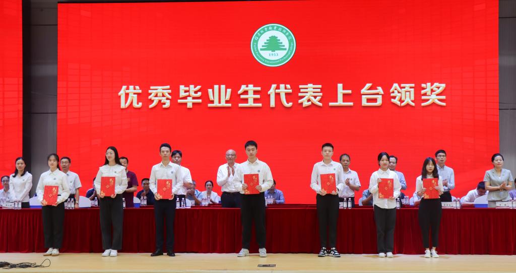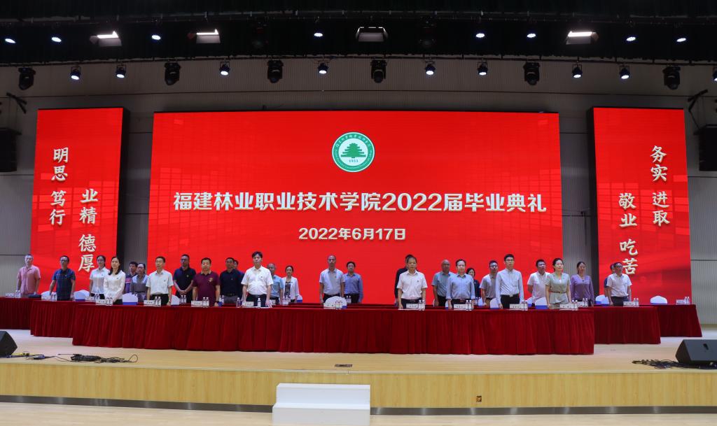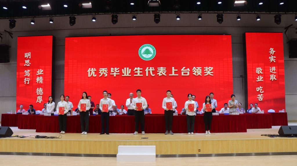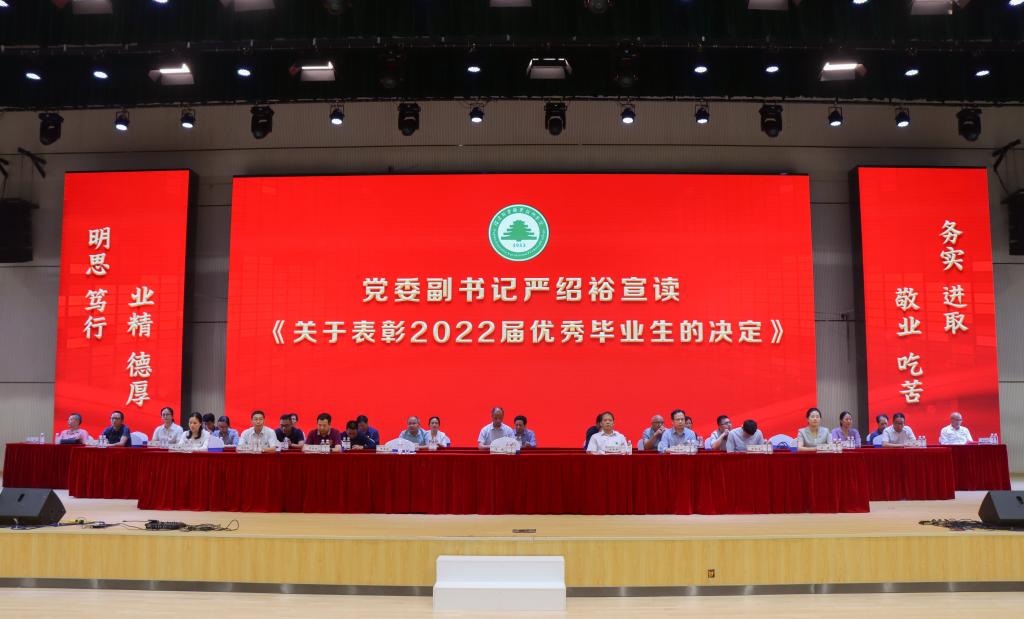 院党委副书记严绍裕宣读了《福建林业职业技术学院关于表彰2022届优秀毕业生的决定》。优秀毕业生代表上台领奖。
