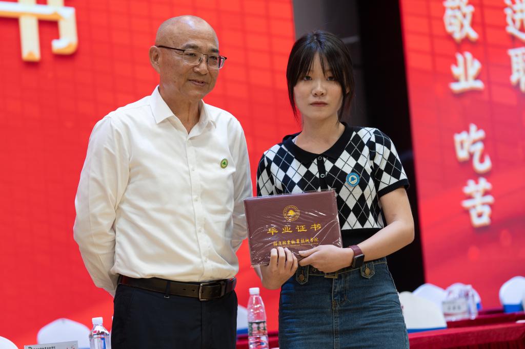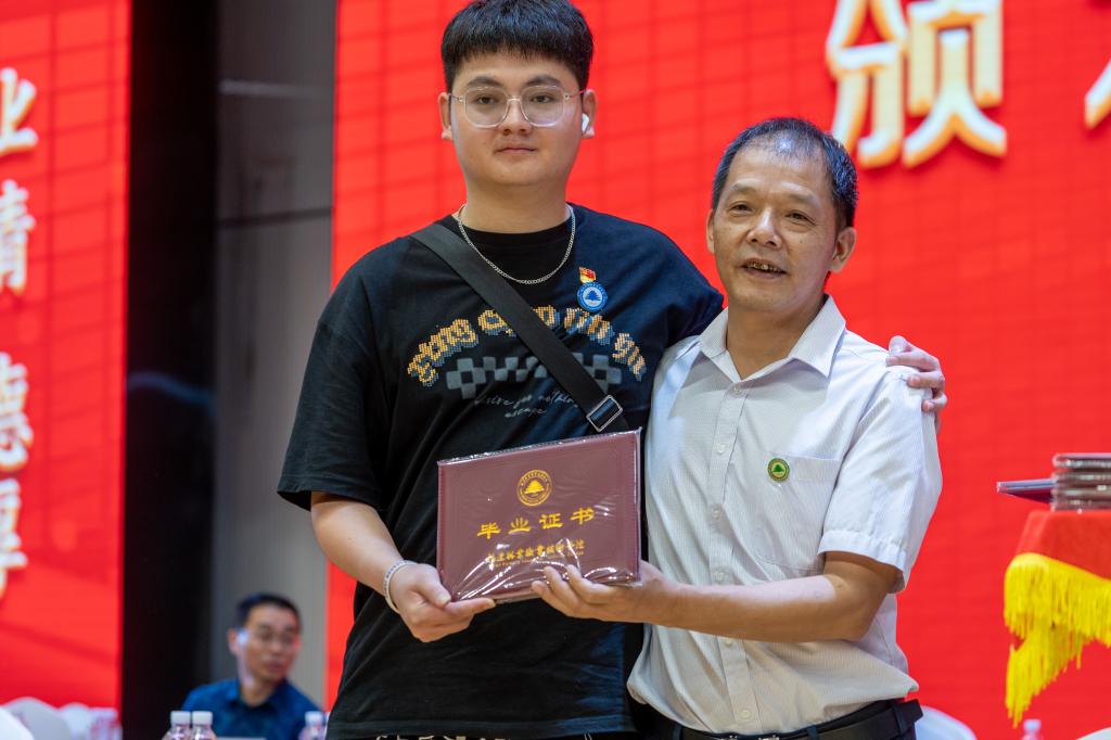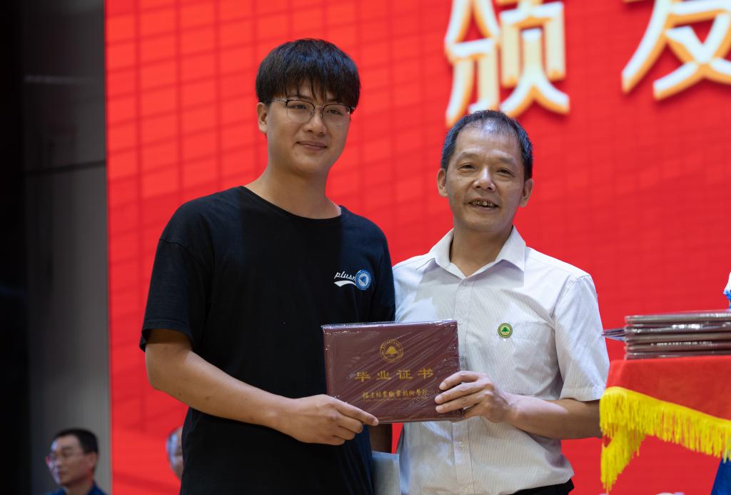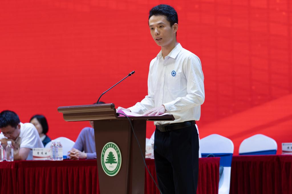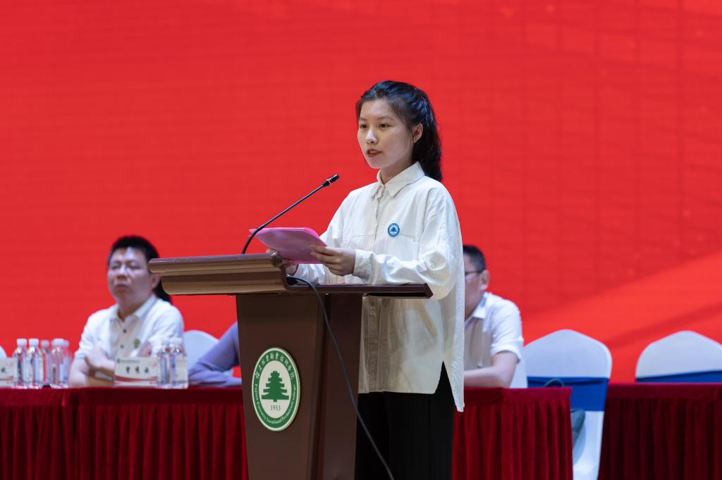 院党委副书记严绍裕宣读了《福建林业职业技术学院关于表彰2022届优秀毕业生的决定》。优秀毕业生代表上台领奖。