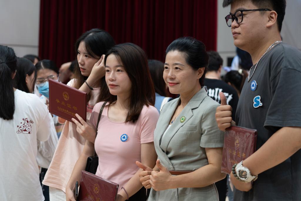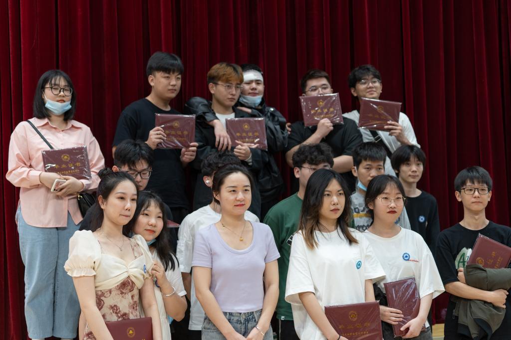 在毕业典礼最激动人心的毕业证书授予仪式中,万泉书记和刘文开院长共同为2022届毕业生代表颁发毕业证书,并与毕业生们亲切合影留念。现场掌声不断,师生脸上都洋溢着笑容,享受毕业礼成的开心时刻。