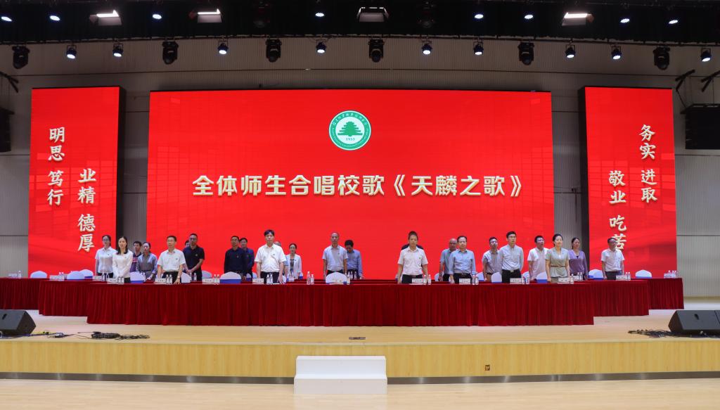 典礼上,为进一步增强毕业生的爱校荣校之情,全体师生起立合唱校歌《天麟之歌》,为毕业典礼画上圆满句号。