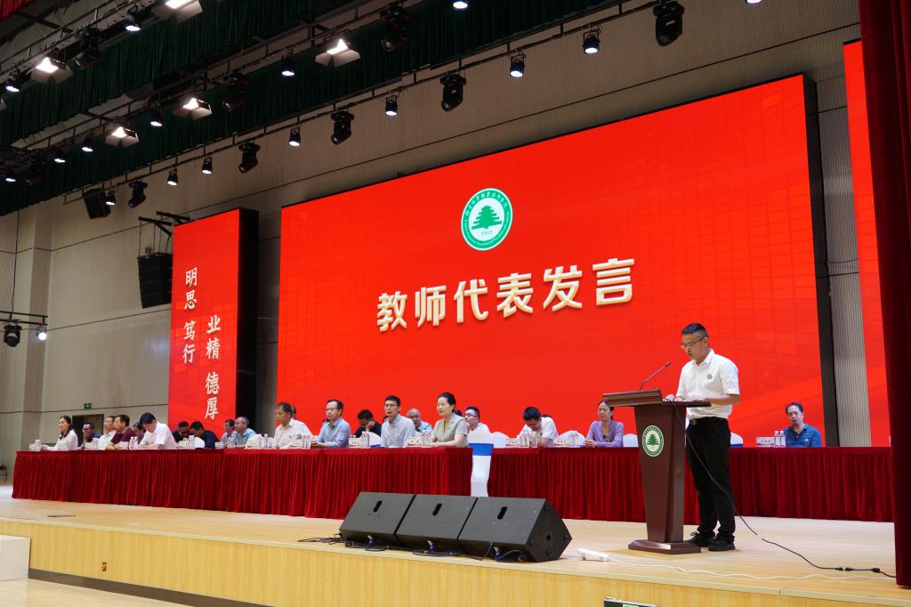 教师代表信息工程系傅祖发老师、毕业生代表建筑工程系建筑工程技术1903班陈荣钦同学、在校生代表林学系旅游管理2002班张潇同学依次发言。他们分别表达了对同学、母校、师长的不舍、感恩与美好祝福,并表明在今后的学习工作生活中会继续发扬天麟精神,续写新的青春篇章。