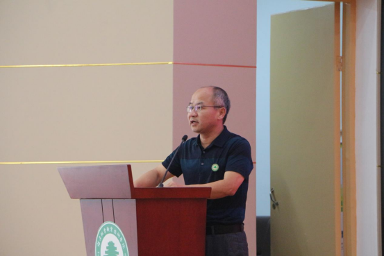第一项议程由园林系主任黄华明对此次技能文化活动月致闭幕词。黄华明主任以党中央、国务院对职业教育高度重视和习近平总书记在全国职业教育大会上作出过的重要指示为切入点,讲述了技能实践的重要性。而后总结了此次园林系技能文化活动花艺、园艺、景观施工图绘制、手绘、园林景观设计、园林植物识别、无人机驾驶、Java程序设计、农产品电商运营等九个赛项的参与情况,向所有付出辛勤劳动的全体教师表示感谢,向各赛项获奖的学生表示祝贺。同时号召同学们在之后的学习与实践中持续保持“奋进者”的姿态,秉承校训,牢记天麟精神,继续奋勇拼搏、再创佳绩,展现新时代园林技能人才的风采,以实际行动迎接党的二十大胜利召开。