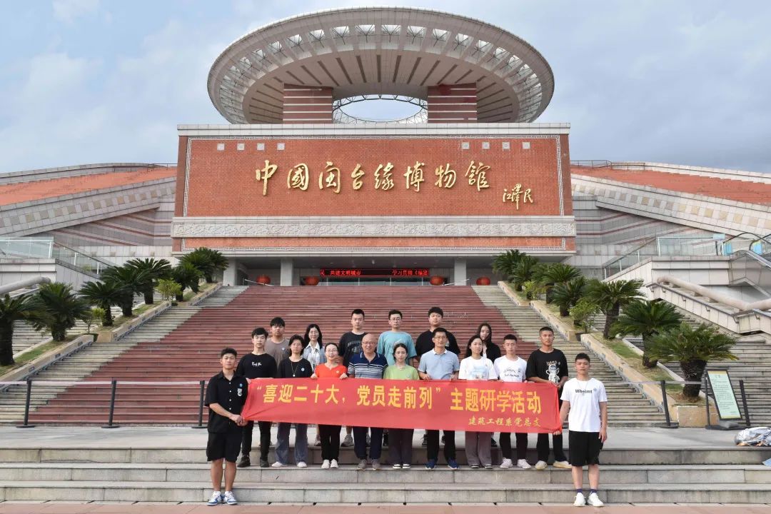 本网讯 为深入学习宣传贯彻习近平新时代中国特色社会主义思想和党的十九届六中全会精神,贯彻落实习近平总书记关于青年工作的重要思想,引导和帮助全系青年学生上好与现实相结合的“大思政课”,在社会课堂中“受教育、长才干、作贡献”,坚定信念听党话、跟党走,迎接党的二十大胜利召开,2022年7月1日至3日,恰逢建党101周年纪念日及学院2022年暑期“三下乡”社会实践开启之际,建筑工程系党总支组织开展“喜迎二十大 党员走前列”主题社会研学活动。建筑工程系党总支书记王云彪带领18名青年教师与学生党员赴泉州市革命烈士陵园、中国闽台缘博物馆、泉州市博物馆等地参观学习、调查研究。