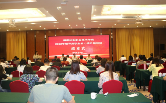 本网讯 7月15日上午,我院2022年辅导员职业能力提升培训班在福建教育学院举行结业仪式。院党委副书记严绍裕、院学生工作部部长蔡敏、福建教育学院职业教育部副主任傅振南出席结班仪式。各系学生科科长、全体专职辅导员参加结班仪式。仪式由教学班主任鄢继伟主持。