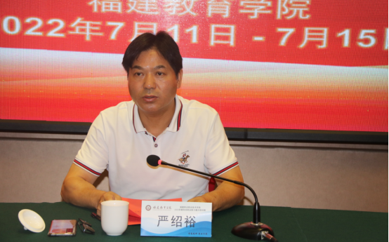 院党委副书记严绍裕对此次培训作了总结讲话。他首先对福建教育学院的各位领导、老师们对本次辅导员职业能力提升培训班的精心组织安排表示衷心感谢。其次,他对本次培训班全体学员提出四点希望:一是信仰守正,坚持做有定位的学工人。要坚持中国共产党的领导,坚持以马克思主义为指导,坚定共产主义远大理想和中国特色社会主义共同理想;二是肩上有责,坚持做有担当的学工人。要把工作当成责任、把责任变为动力,化繁为简、结点成线,既提高工作效能,也推动学生工作与中心工作的同频共振;三是严慈并济,坚持做有情怀的学工人。要用父母之心、同辈之情、师生之爱去呵护学生,成为学生的人生导师和知心朋友的同时,要特别关注特殊学生群体,给予更多的帮助和关心,做到施爱无痕;四是学无止境,坚持做有理想的学工人。要认清时代要求,坚持理想,不断学习,才能掌握与大学生思想脉搏和情感诉求相匹配的话语权,真正做到“三全育人”。