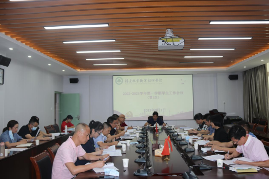 本网讯 9月1日下午,我院在江南校区行政楼五楼会议室召开2022-2023学年第一学期第一次学生工作例会。院党委副书记严绍裕出席并主持会议。学生工作部、安全保卫处、团委主要负责人,各系党总支书记、副书记参加会议。