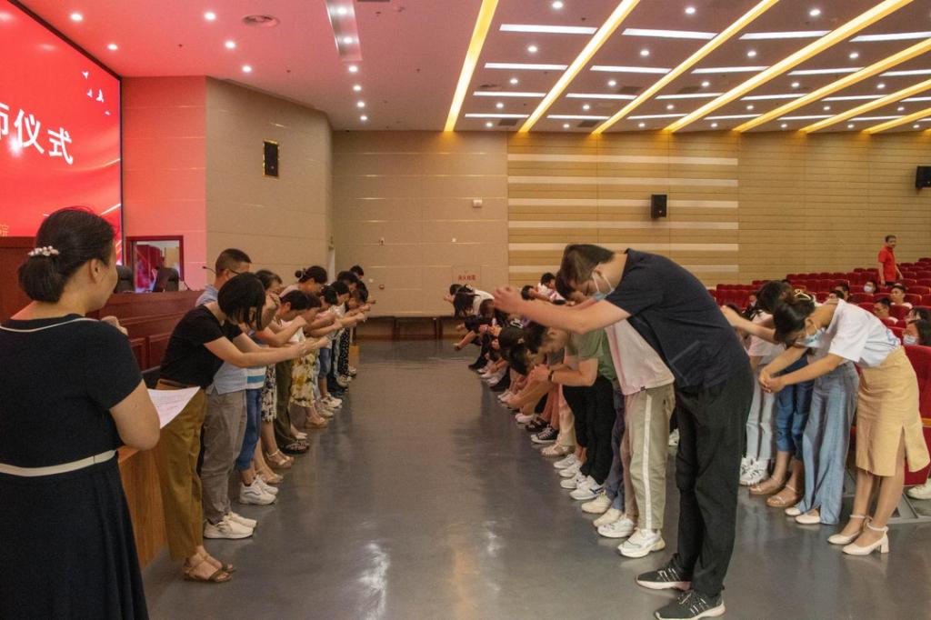 本网讯 新学期伊始,为使新入职青年教师尽快实现角色转换,提高教学水平,提升新入职教师素质,2022年9月2日我院举行富含传统文化韵味的新教师“拜师”仪式。仪式通过拜师结对,充分发挥老教师具有丰富教育教学经验的优势,践行“以老带新,薪火相传”的传承理念。仪式由人事教育处处长黄丽霞主持,李肇锋副院长向青年教师导师颁发聘书。